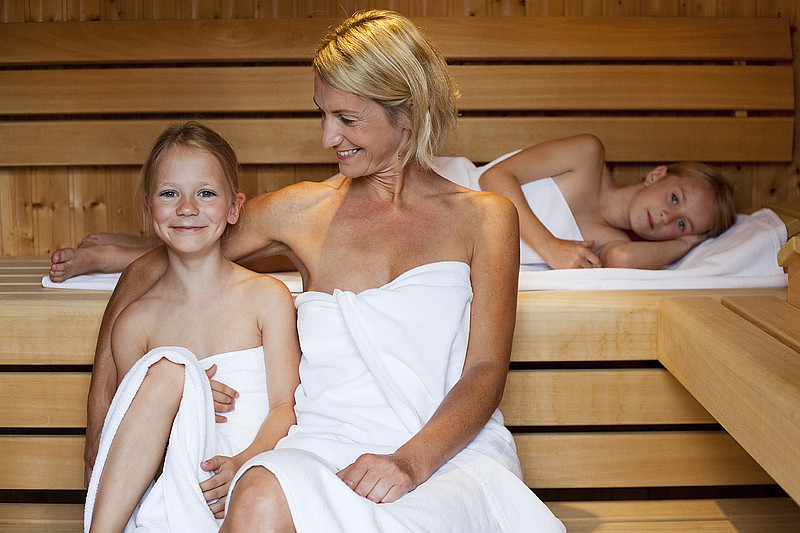Rádi se prohříváte v sauně, chtěli byste začít i s vašemi dětmi? Do toho! Saunování má především preventivní účinek. Pro posílení imunity se doporučuje saunovat alespoň jedenkrát týdně. Vyberte si pravidelný den v týdnu a přijďte s dětmi do sauny. Ideální místo pro saunování dětí je ve spodní části kabiny. Doporučujeme je umístit na první stupínek v kabině, kde je pro ně vhodná teplota okolo 65 stupňů. Délka prohřívání, která je tak pro dospělé obvykle 10 - 15 minut se u dětí krátí. Děti mohou využívat wellness do 17.00h a to vždy za doprovodu rodiče. Pro návštěvu s dětmi doporučujeme dopolední hodiny.